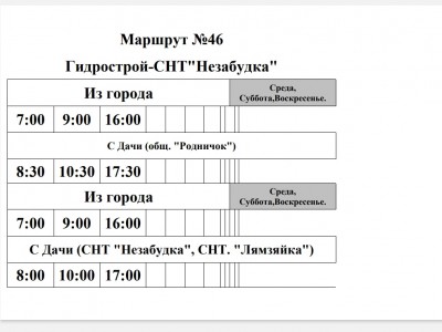12) Маршрут №46 (Гидрострой - СНТ "Родничок" – СНТ "Незабудка")