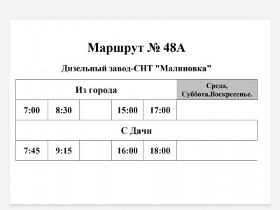 14) Маршрут №48А (Дизельный завод - СНТ "Малиновка")