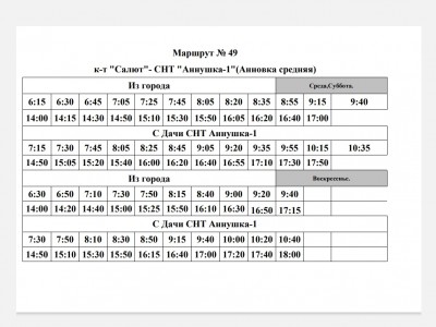 15) Маршрут № 49 (к-т Салют - СТ "Аннушка-1")
