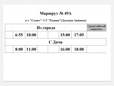 16) Маршрут №49А (к-т "Салют" - СНТ "Родничок")
