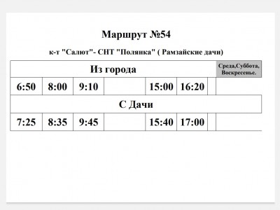 17) Маршрут №54 (к-т "Салют" - СНТ "Полянка")