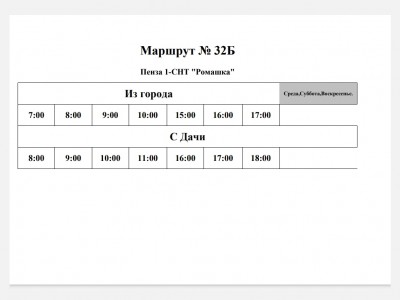 2) Маршрут №32Б (Пенза1- СНТ "Ромашка")