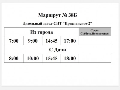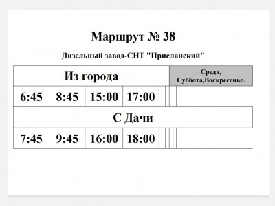 3) Маршрут №38 (Дизельный завод - СНТ "Приеланский")