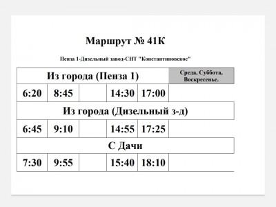 6) Маршрут №41К (Пенза 1 - СНТ "Константиновское")