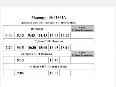 7) Маршрут №41+41А ("Дизельный з-д СНТ Ладыш -СНТ Импульс")