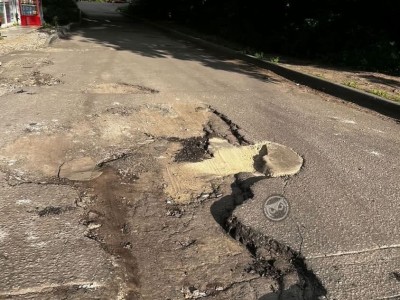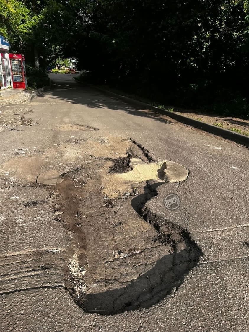 Фото огромного провала было опубликовано в соцсети. На снимке видно яму, распластавшуюся почти по всей ширине проезжей части.