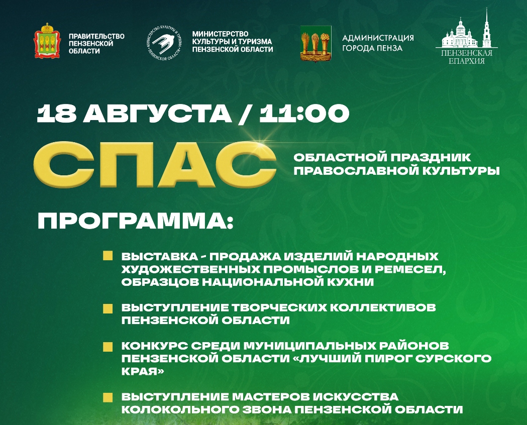 18 августа на площади перед Спасским кафедральным собором Пензы состоится масштабный праздник православной культуры «Спас».