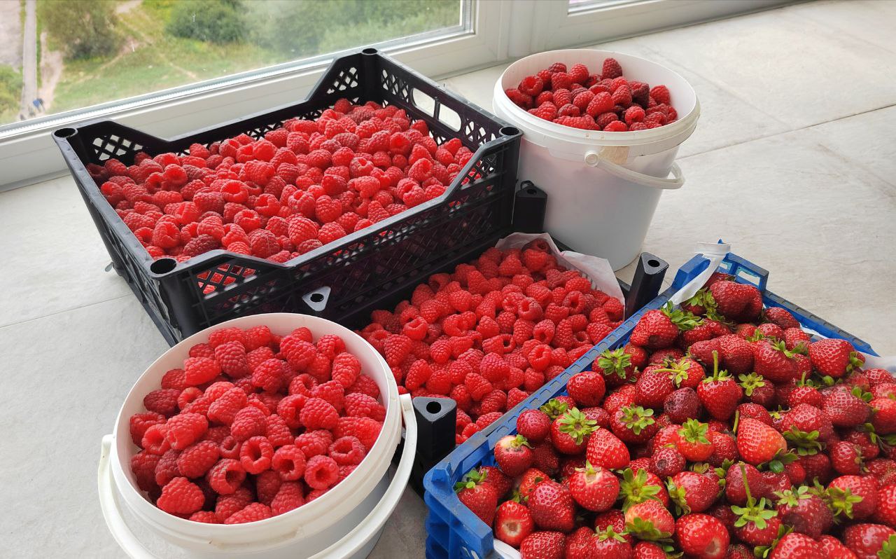 "Собрали 15 килограммов ягоды, очень быстро, ушло чуть больше часа. Восторг! Малина огромная и ее много - куст буквально усыпан. Получили удовольствие", - поделилась семья, приехавшая в Симбухово из Пензы. Супруги поделились фотографией урожая.