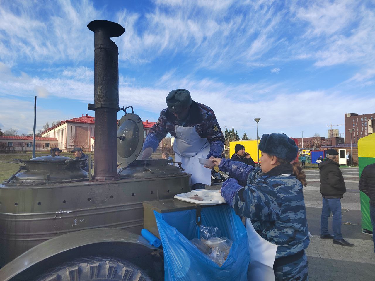 Работала полевая кухня, гостей угощали кашей с пылу, с жару.