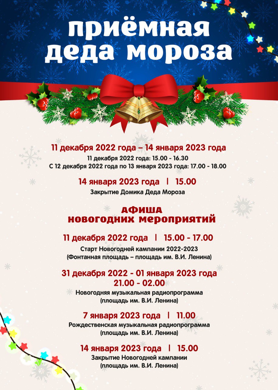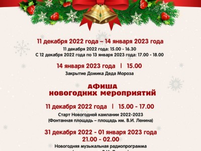 До 13 января 2022 года на площади Ленина будет работать Домик деда Мороза, с 17:00 до 18:00.