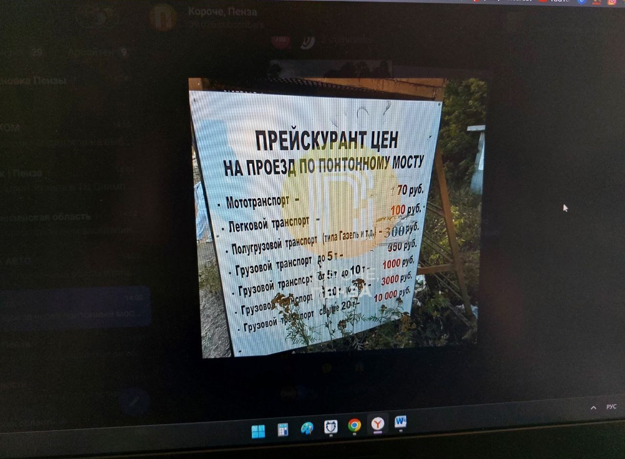 Жители Пензы оказались возмущены увеличением стоимости проезда через понтонный мост в Засечном.