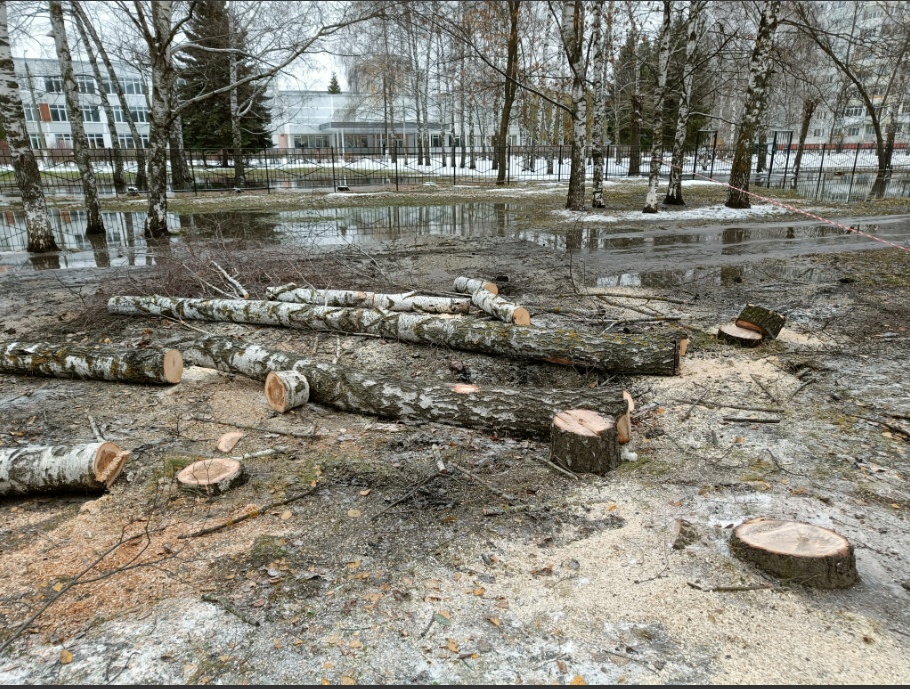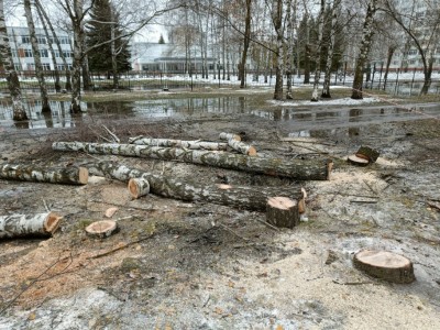 Горожанин отметил, что в ноябре прошлого года у данной школы были спилены здоровые деревья, однако одинокую и действительно опасную березу никто не заметил. В качестве доказательства пензенец опубликовал еще одно фото, на котором видно уничтоженные явно здоровые деревья.