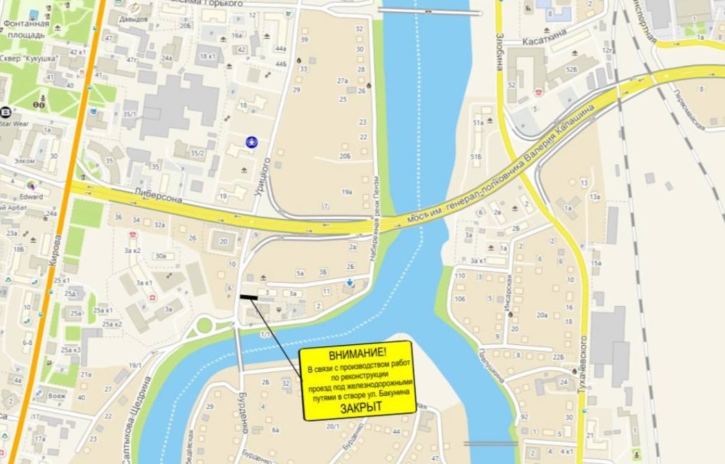 Министерство строительства и дорожного хозяйства Пензенской области сообщило о предстоящем перекрытии проезда под железнодорожными путями в районе Бакунинского моста.
