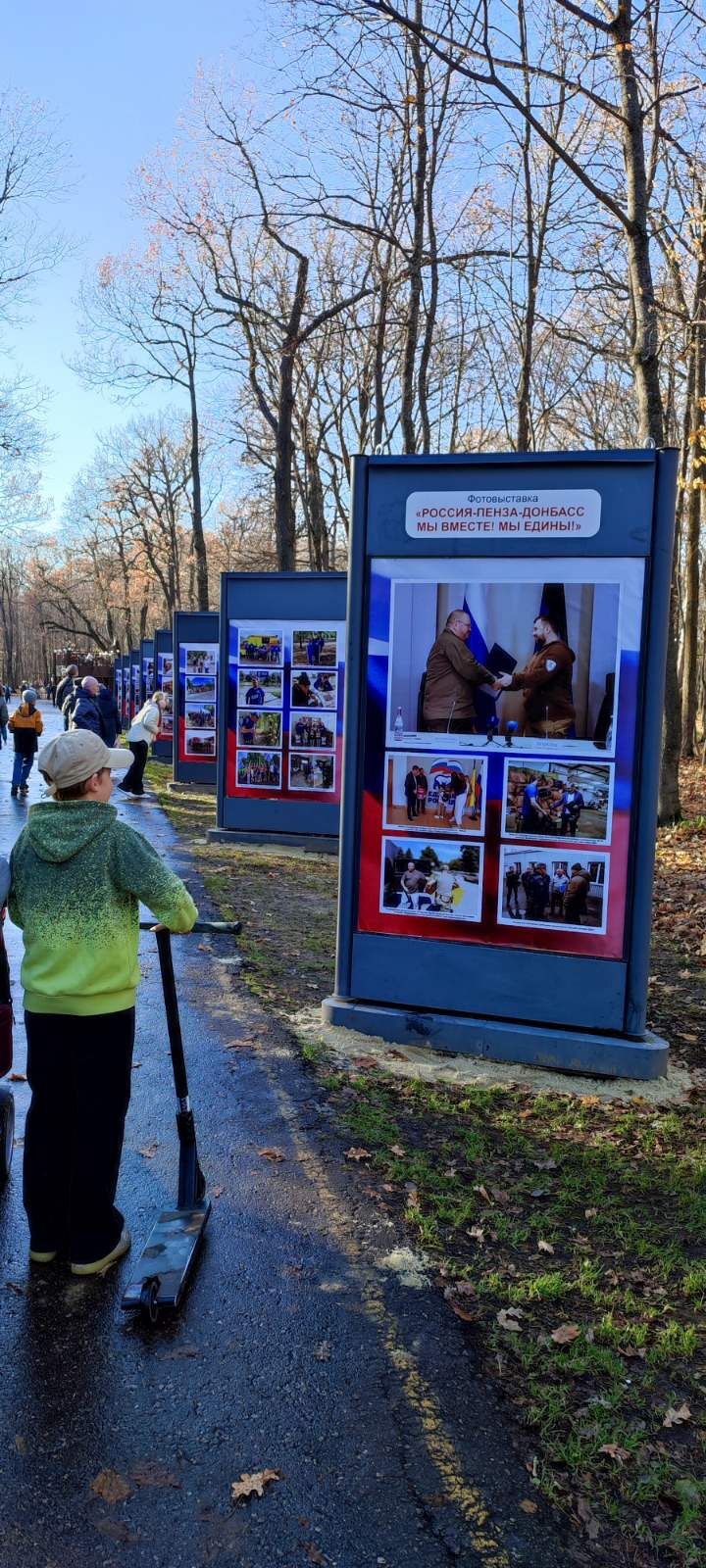 Ранее на Олимпийской аллее установили стенды для выставок детских рисунков. В настоящее время их место заняли фотографии, подготовленные к фотовыставке «Россия-Пенза-Донбасс. Мы вместе! Мы едины!».