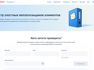 На портале Госуслуги заработал новый сервис, с помощью которого можно узнать, является ли человек злостным неплательщиком алиментов. Как сообщили специалисты платформы, теперь пользователи могут получить доступ к открытому реестру тех, кто уклоняется от выполнения своих обязательств по содержанию детей или родителей.