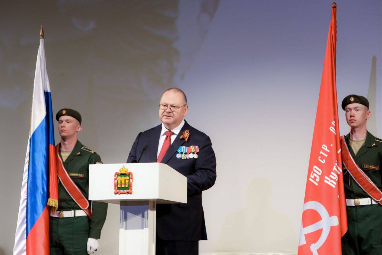 В Пензе состоялось торжественное собрание, посвященное 80-летию появления надписи "А мы из Пензы" на стене рейхстага. Эта надпись стала символом мужества и стойкости жителей Пензенской области в годы Великой Отечественной войны. Губернатор Олег Мельниченко напомнил о вкладе региона в общую Победу.