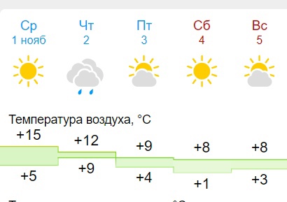 Согласно прогнозу синоптиков, в первые дни ноября будет солнечно, температура воздуха составит от +1 ночью до +9 днем. Сегодня, 1 ноября, столбик термометра и вовсе поднимется до +15.