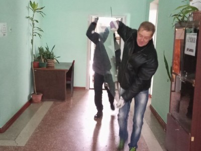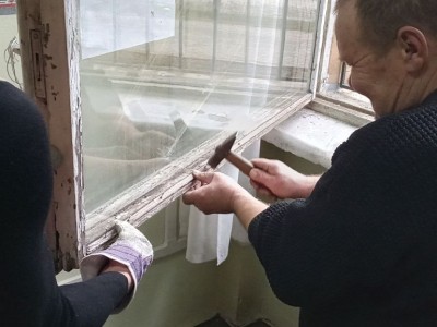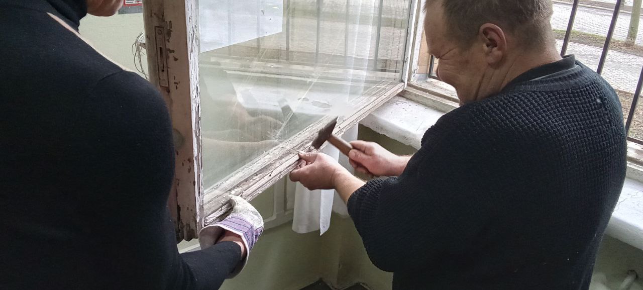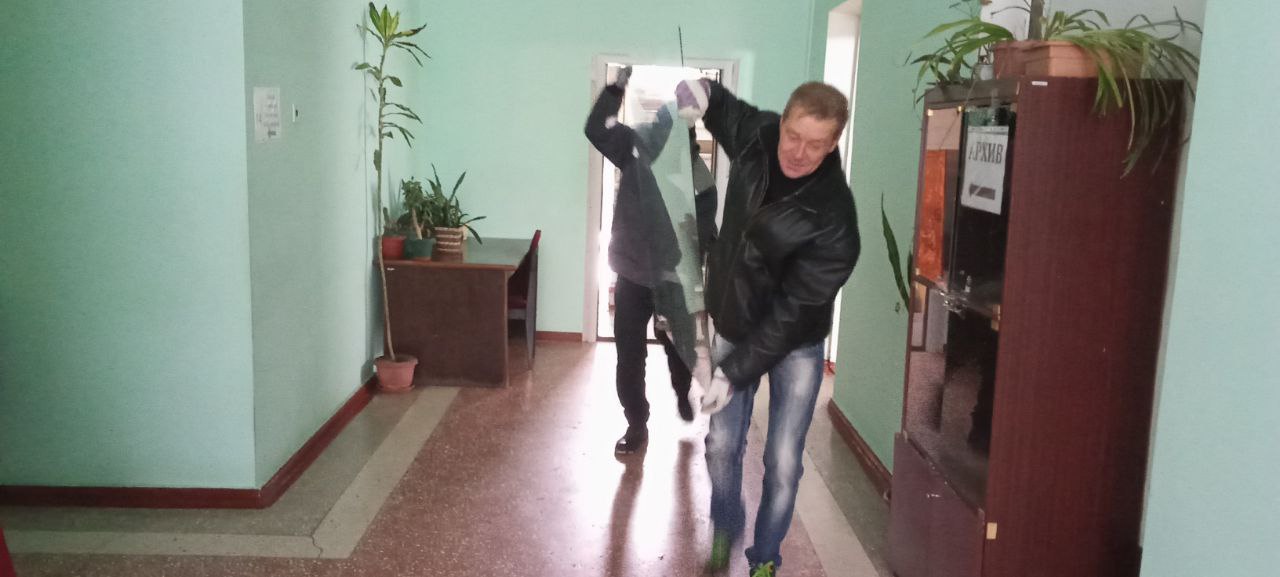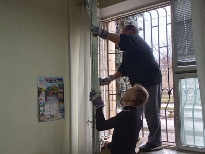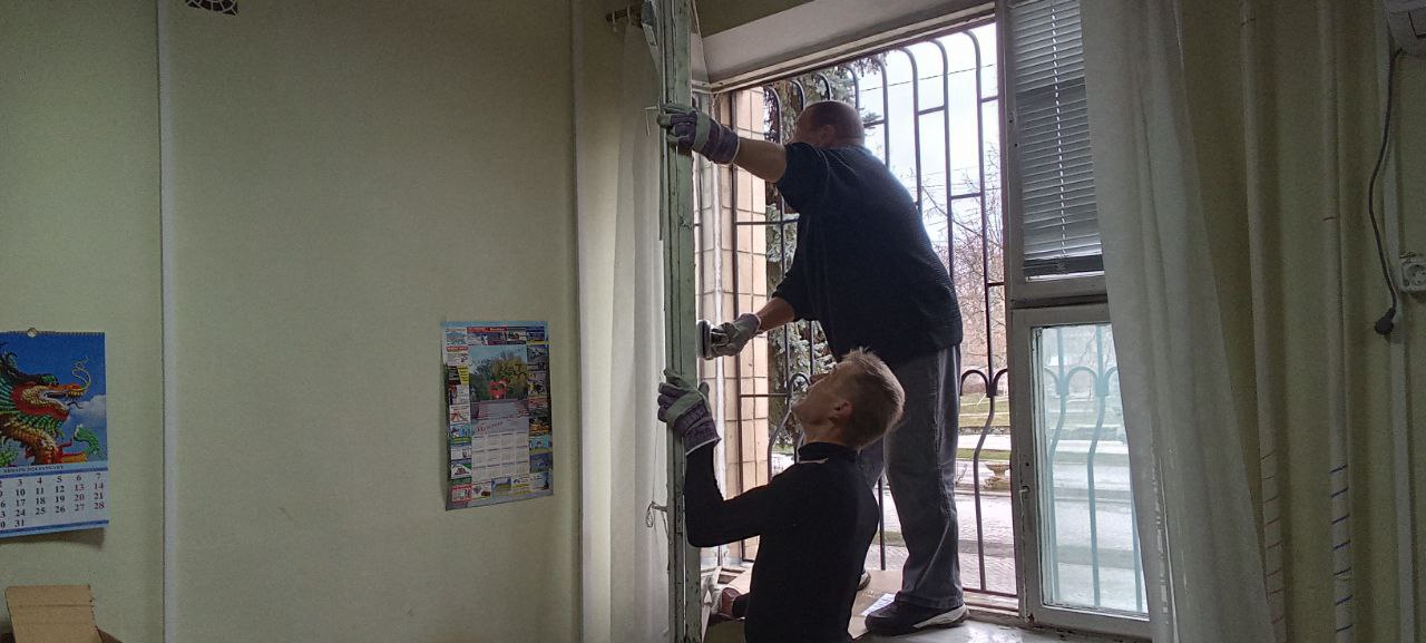Пензенцы помогают восстановить остекление здания Управления соцзащиты в Токмаке