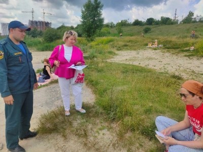 Отдыхающим напомнили о запрете купания в запрещенных местах, в состоянии алкогольного опьянения и об ответственности за купание несовершеннолетних детей, которых нельзя оставлять без присмотра, вручили памятки.
