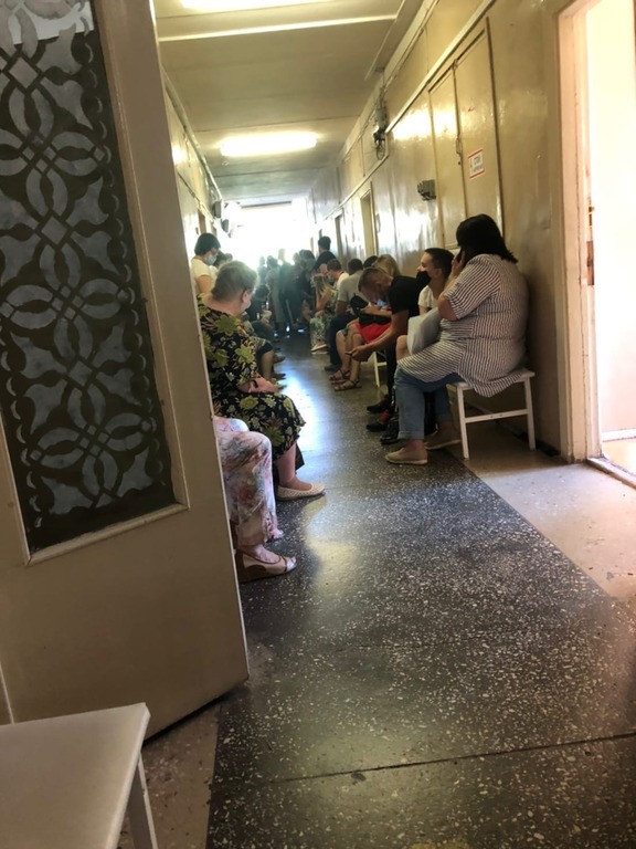 «Записалась на вакцинацию 12 июля в 8:45. В 8:50 наблюдалась такая картина, и те, кто хотят закрыть больничный, и те, кто хотят вторично или первично вакцинироваться сидят в одном коридоре в кабинет к терапевту. Пройти вакцинацию в назначенное время невозможно, мне удалось поставить вакцину лишь спустя час», – пожаловалась автор поста.