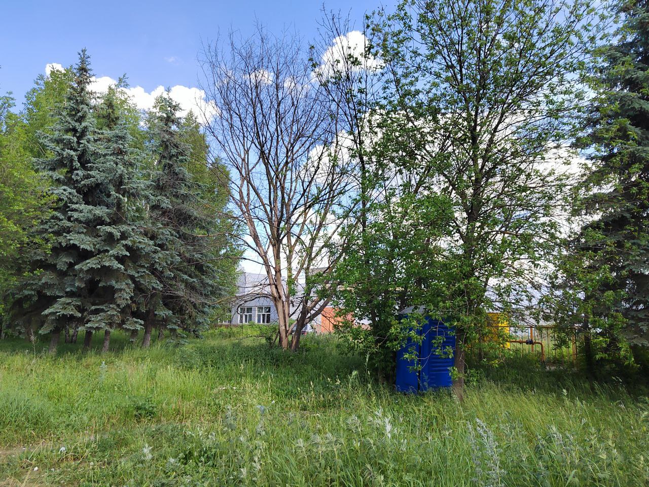 Сквер порос бурьяном. Очевидно, что ходить здесь небезопасно. Хаотично разросшийся кустарник закрывает обзор и в этом буреломе может происходить всё, что угодно