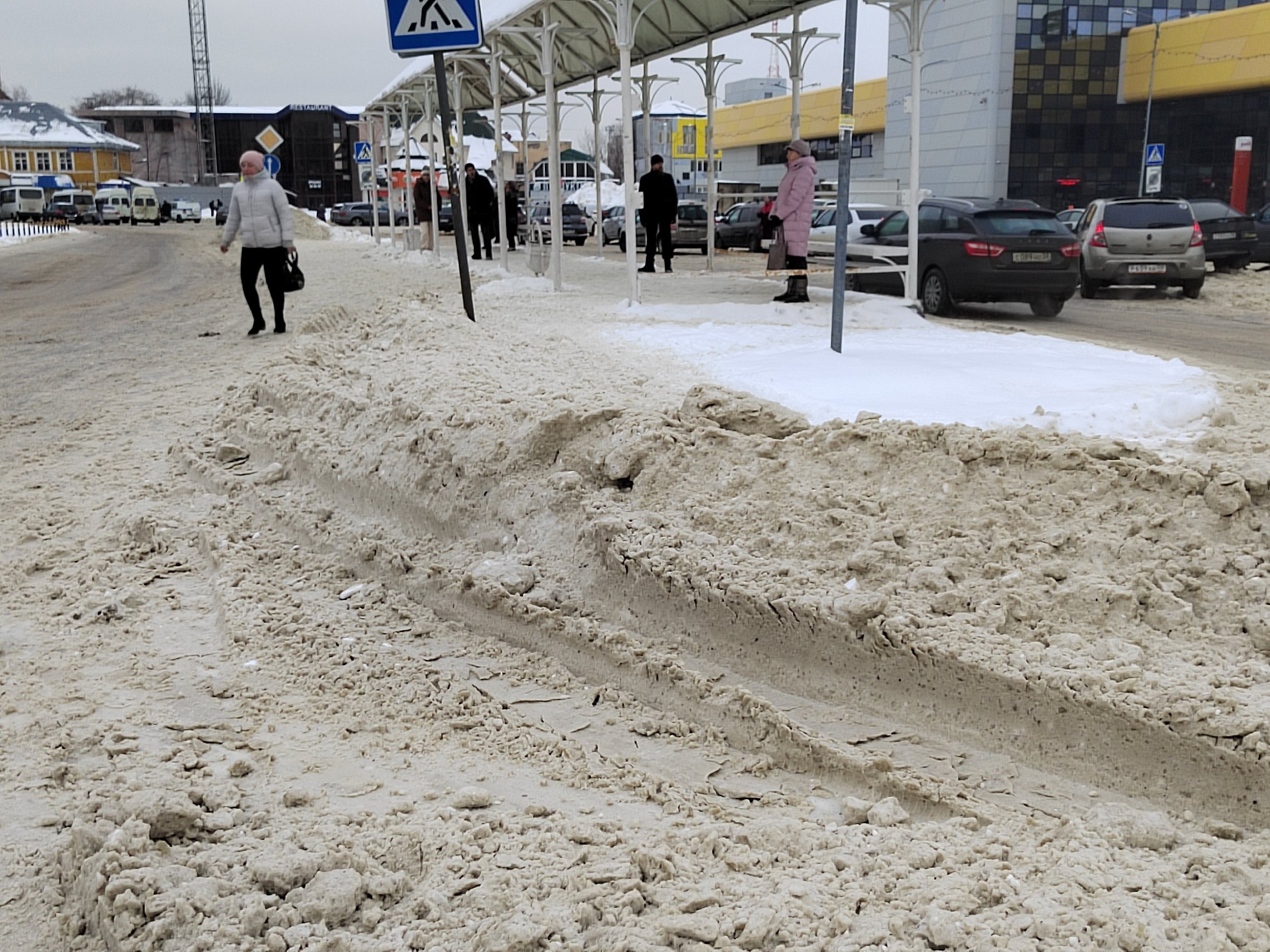 Помимо пешеходов на некачественную расчистку снега пожаловались автомобилисты. По словам водителей, у вокзала на дорогах образовалась вязкая снежная каша, в которой они вынуждены буксовать.