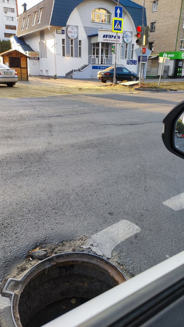 Дорожные службы пока никак не отреагировали на ситуацию, колодец не обнесен забором. Так что единственный выход для водителей - быть бдительными.