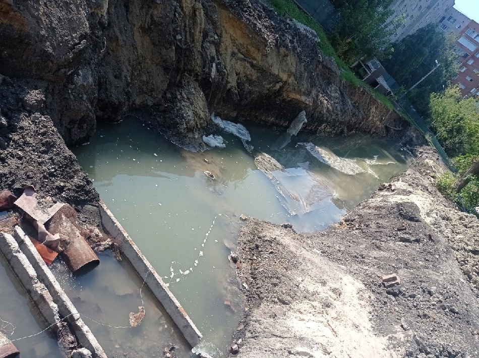 Он рассказал, что вода стекает в место работы по замене теплотрассы.