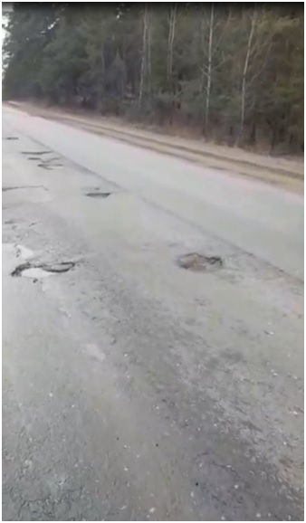 На нескольких участках зияют огромные ямы. Мужчина остановил автомобиль и снял непригодную для езды дорогу.