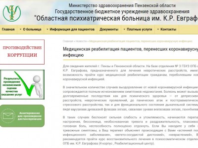 Местные специалисты предлагают пензенцам, переболевшим COVID-19, «успокоить» нервы и пройти курс медицинской реабилитации в одном из отделений больницы.