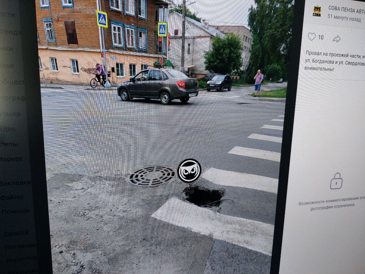 По словам автора поста, дыра появилась на пересечении улиц Богданова и Свердлова.