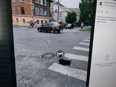 О яме предупредил один из жителей, который опубликовал в сети фото провала. Он образовался прямо на проезжей части: на пешеходном переходе рядом с канализационным люком. Судя по снимку, из дыры уже торчит какая-то арматура или ветка.