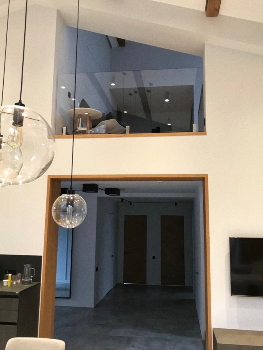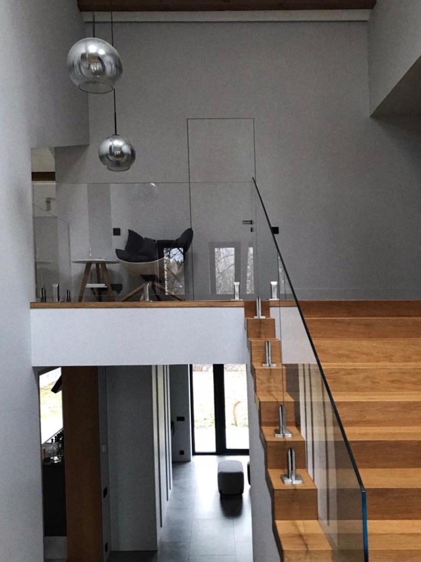 Дизайнер проекта Игорь Комаров рассказал о своей работе: «Лестничные ограждения из прозрачного закаленного стекла – идеальное решение для современных интерьеров. Они не только придают помещению элегантный и стильный вид, но и создают ощущение легкости, простора, визуально расширяя пространство. Закаленное стекло — прочный и безопасный материал, выдерживающий значительные нагрузки. Это оптимальный выбор для лестниц и балконов».
