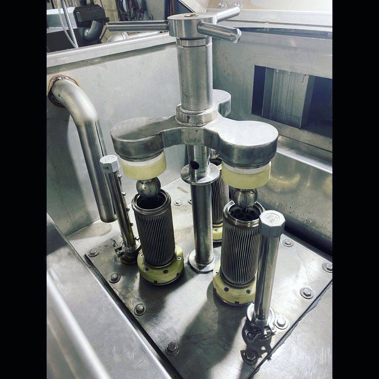 Процесс очистки многоступенчатый. Сначала деталь обдают раствором под давлением 2 бара. Затем споласкивают проточной̆ водой̆. Потом начинается самое важное – стадия ультразвуковой очистки. Затем еще один цикл ополаскивания и сушка.