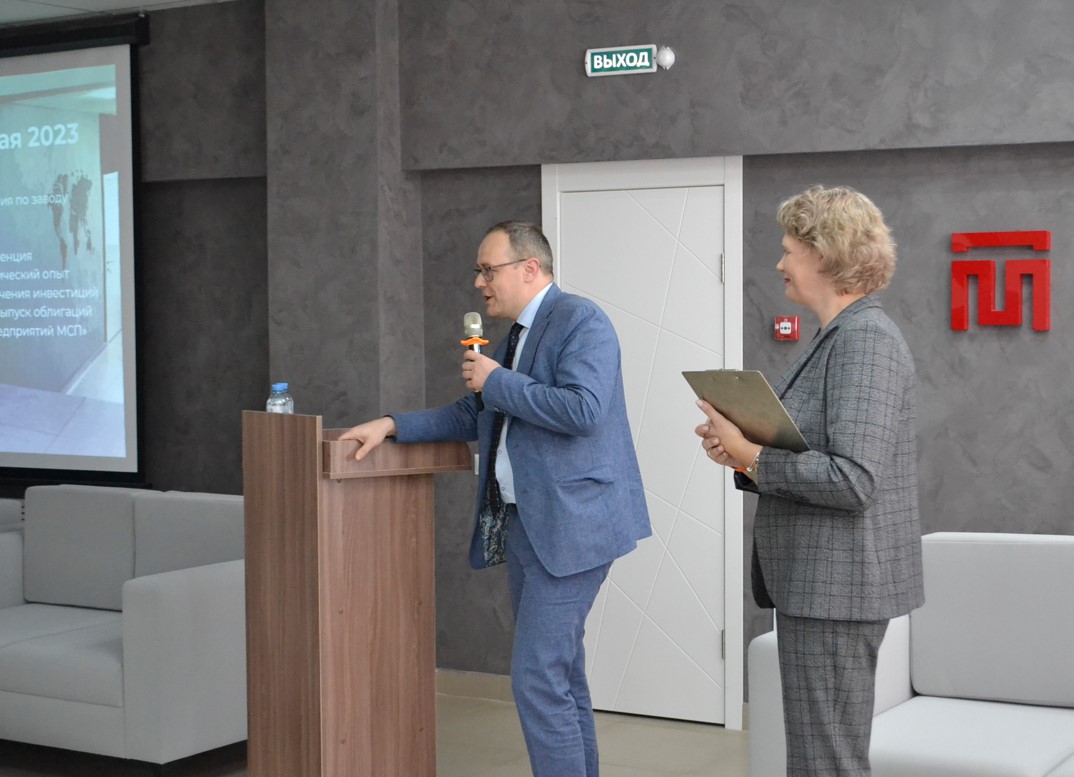 «Сегодня поговорим о практическом опыте привлечения инвестиций посредство выпуска облигаций на фондовом рынке для предприятий малого бизнеса, которым является компания «Мизотти». Передаю слово заместителю министра экономического развития и промышленности Пензенской области Антонову Михаилу».