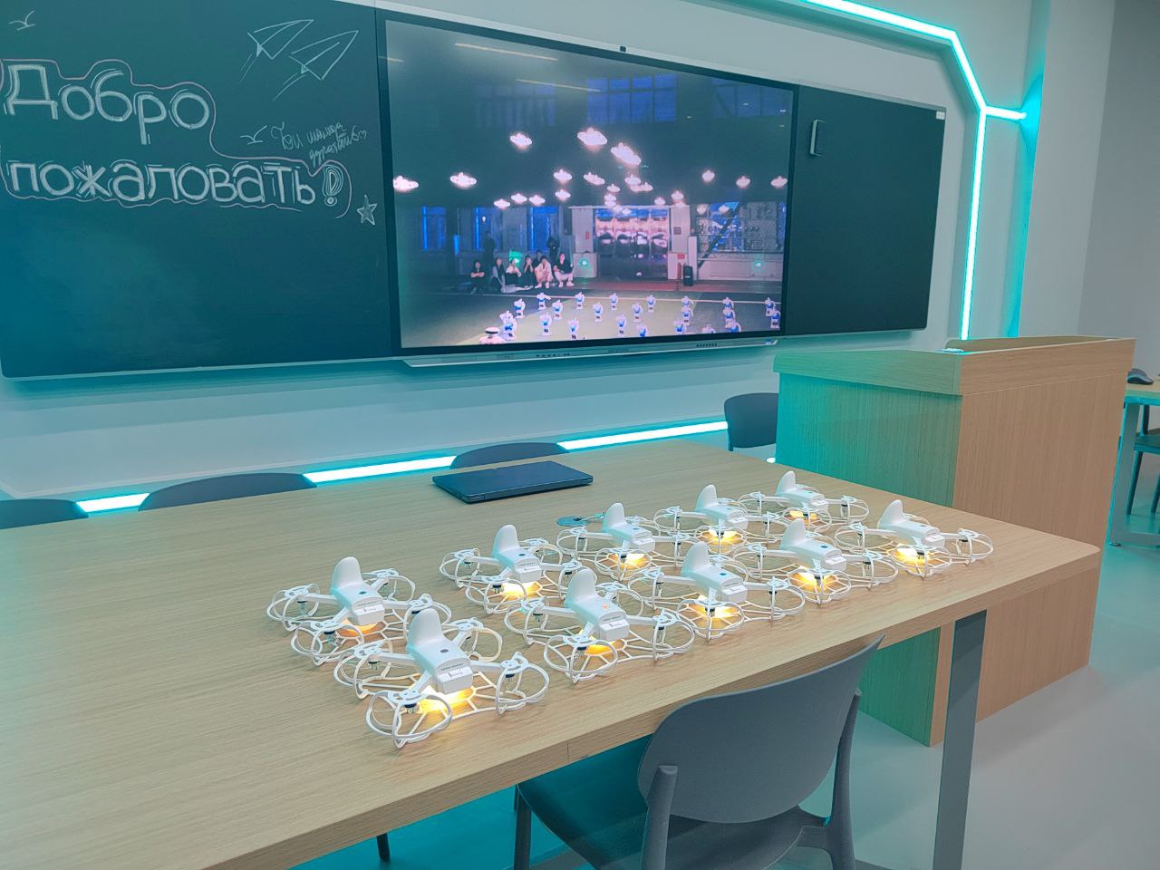 Именно здесь могут запрограммировать коптеры на синхронный полет, научить роботов играть в футбол. Примечательно, что надписи в учебном заведении почти везде продублированы на русском.