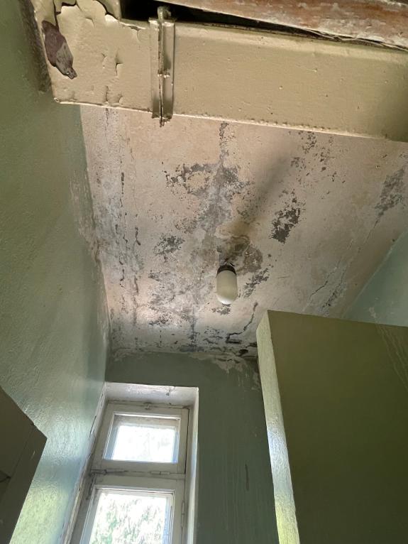 Проверка прокуратуры выявила многочисленные нарушения санитарно-эпидемиологического законодательства и строительных норм: повреждения пола, стен, фасада, крыльца, деформацию потолка и проседание пола на первом этаже.
