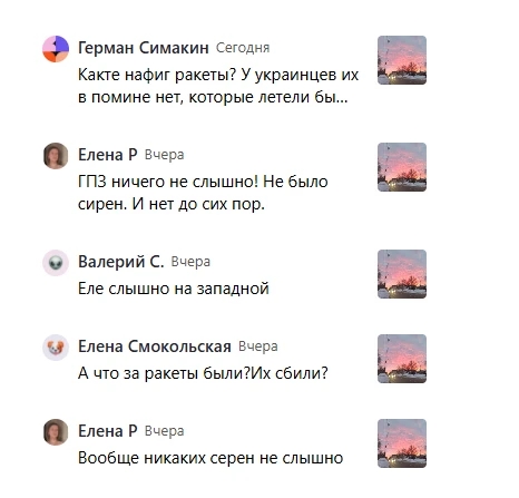 Основные претензии возникли к сигналу тревоги: его было слышно далеко не во всех районах. Жители ГПЗ сообщили, что сирен не было слышно совсем, а на Западной Поляне люди говорили, что сигнал был едва различим. Кроме того, сирены зазвучали лишь спустя несколько минут после официального объявления ракетной опасности в электронных источниках.
