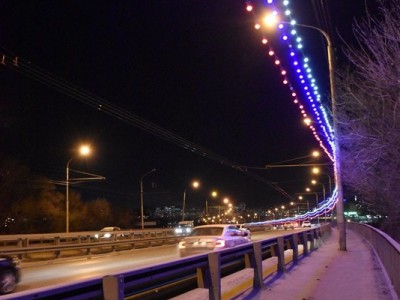 Световые элементы организованы на основных улицах и путепроводах. По всей улице Московской фонари уже принарядились в гирлянды.