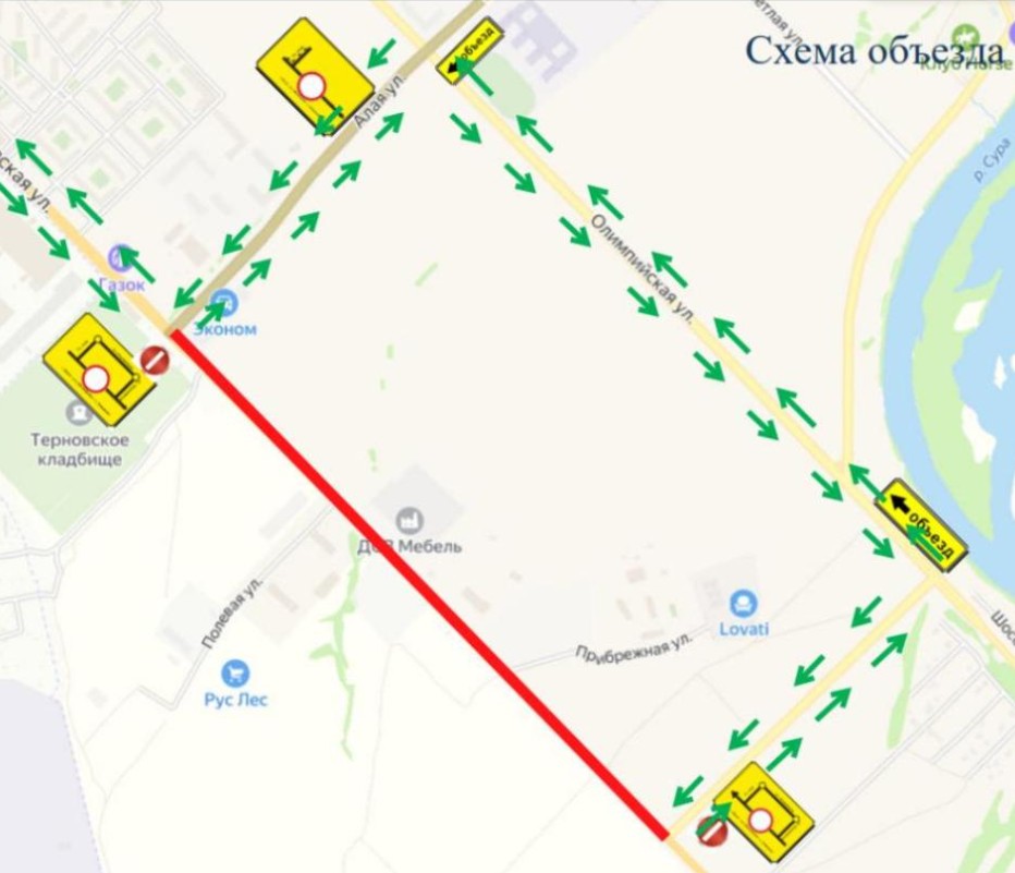 Объехать закрытый участок можно по улицам Алой и Олимпийской села Засечного.