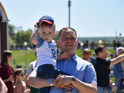 Набережная превратилась в выставочную площадку, где были представлены образцы ретротехники, военной техники, а также экспозиции ДОСААФ.