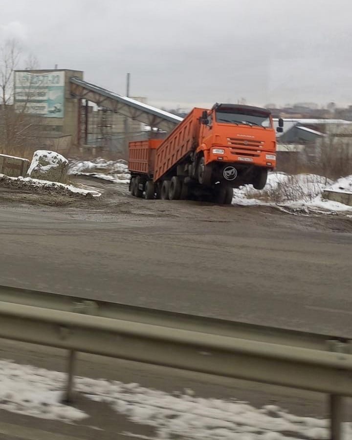 22 ноября, в 11:00, на улице Островной водитель «КАМАЗа» не смог справиться с управлением, и передняя часть машина поднялась от земли.
