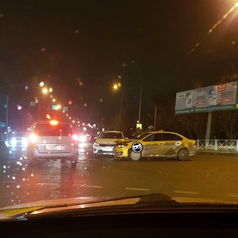 Еще одно ДТП случилось на улице Окружной в 17:22. На фото, опубликованных в сети, видно, что участниками аварии стали две легковушки, на одной есть логотип службы такси.