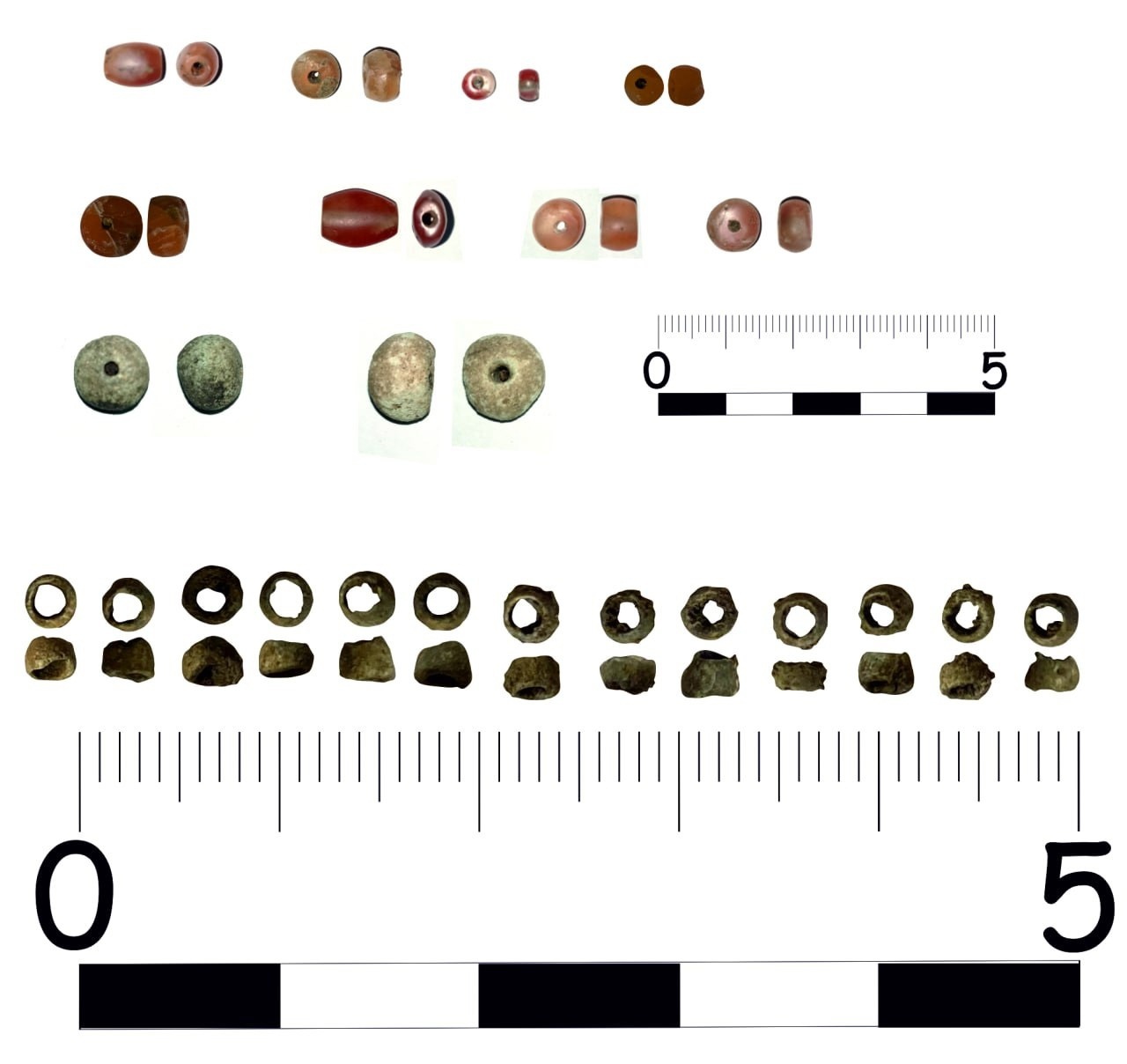 Вместе с человеческими останками в могиле находились несколько глиняных сосудов, их расположили перед лицами погребенных. Также археологи нашли на телах бронзовые желобчатые браслеты, каменные и сердоликовые бусы и женский головной убор с мелким бисером.