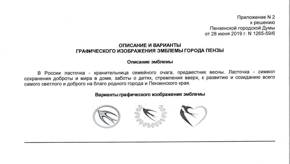 Напомним, Пенза имеет собственный герб, флаг и гимн. Они утверждены Гордумой. В 2019 году была утверждена эмблема города, на которой изображена ласточка. На протяжении долгих лет она была частью герба Пензы советского периода и символизировала движение вверх к новым вершинам. На гербе ласточка появилась еще в 1964 году.