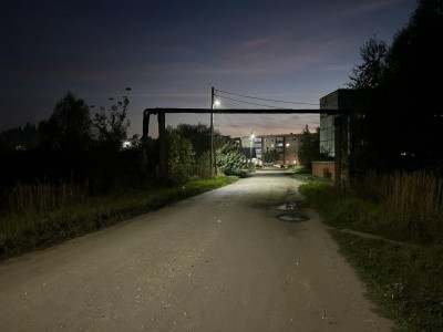 Освещение отсутствовало на дороге, ведущей от торгового центра «Лига» до улицы Тамбовская. По какой-то причине столбы вдоль дороги установили, но лампочек к фонарям никто не закупил.