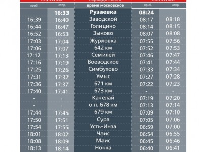 С 21 декабря пригородный поезд №7207 Ночка – Рузаевка будет отправляться от станции Инза. Поезда будут курсировать по понедельникам, субботам и воскресеньям.