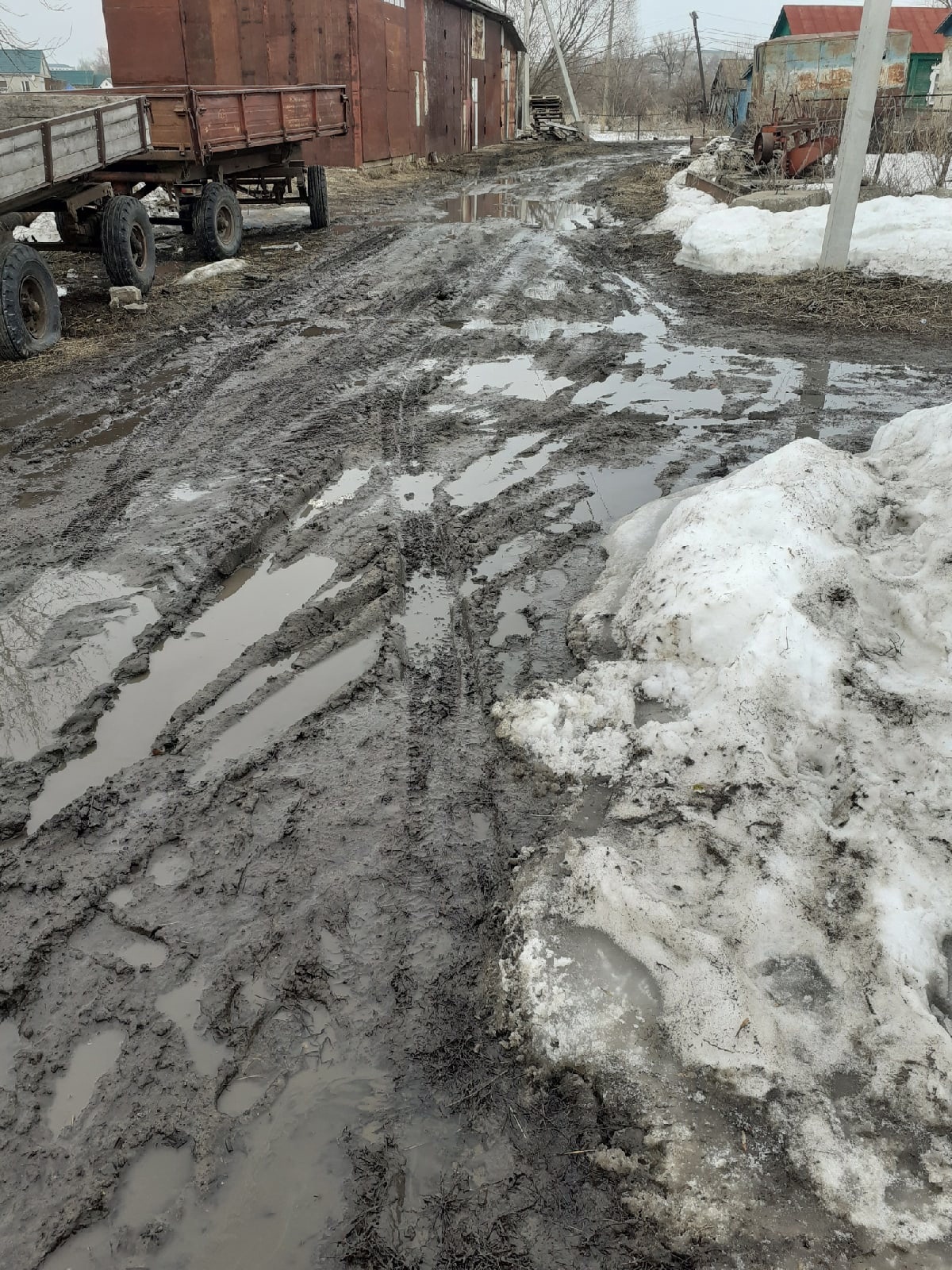 «Улица пионерская. Проехать можно только на тракторе!», — написал интернет-пользователь. К сообщению он прикрепил несколько снимков, на которых изображена грязная дорога, покрытая колеями от машин.