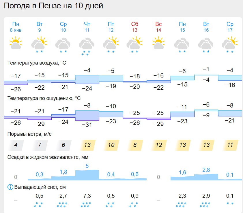 С 9 января Пензу начнет засыпать снегом на фоне жестких морозов