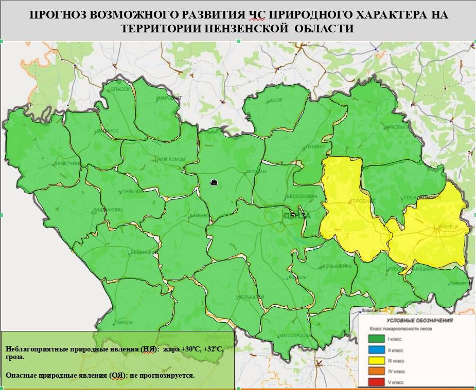 3 класс пожарной опасности установлен в Городищенском и Кузнецком районах.